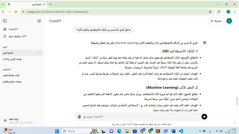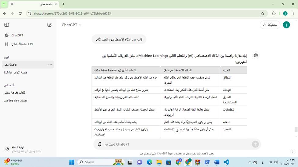 - النتيجة المتوقعة: ” مقارنة بين الذكاء الاصطناعي والتعلم الآلي يكتب نبذة عن كل منها