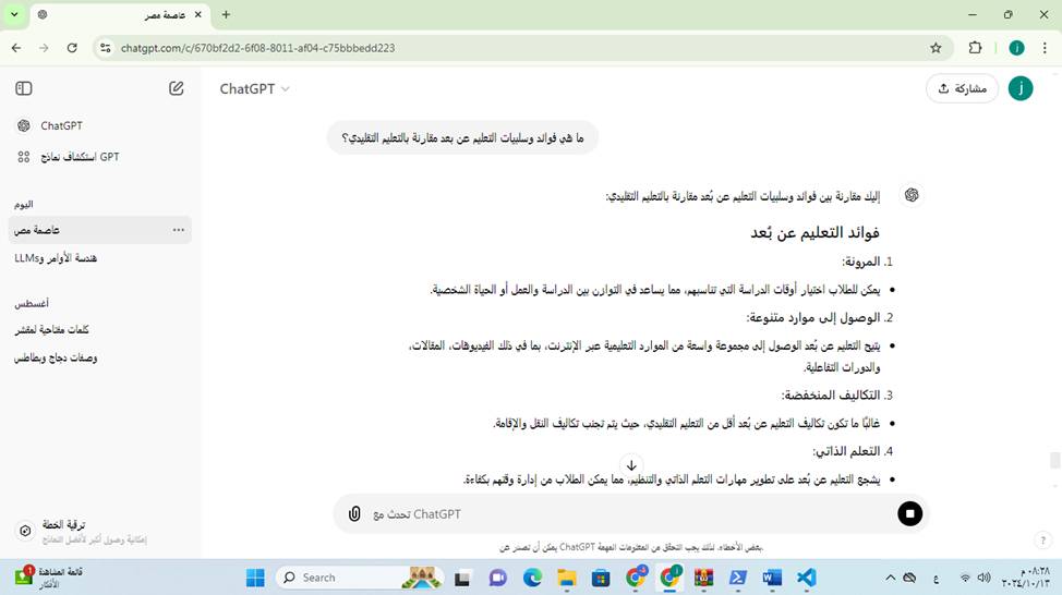 - الأمر: “ما هي فوائد وسلبيات التعليم عن بعد مقارنة بالتعليم التقليدي؟”